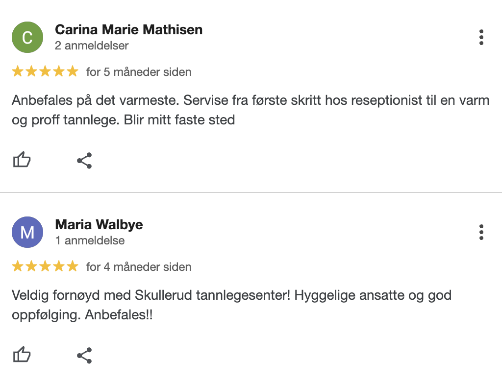 Du velger selv hvor hvite tennene skal bli. Effekten kan vare i flere år hvis du tar vare på tennene, og du kan enkelt friske opp blekingen senere med de samme skinnene. Prosessen er helt smertefri.